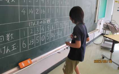 「剣玉を落とさずに続けた回数」「タイピングを間違えずに打てる打数」等、それぞれの得いなことに挑戦しました。友達の記録をしっかりとまとめるなど協力する姿も見られました。