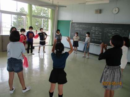 多数決で「応援練習」「ジェスチャーゲーム」に決まり、自分がやりたいグループに分かれて楽しみました。