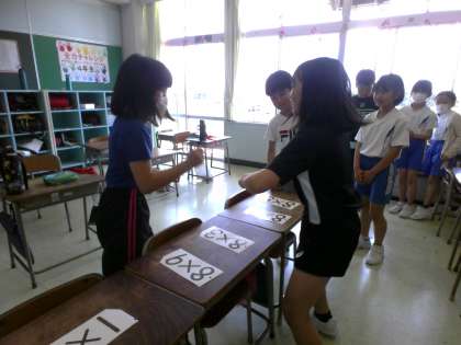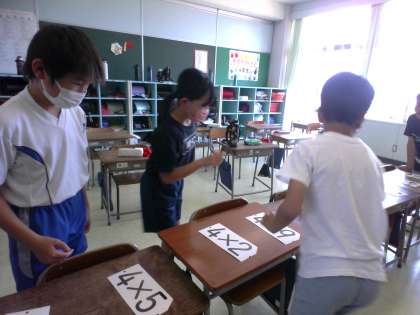 4年生 わり算の筆算に向けて 公開日 2023/05/18 更新日 2023/05/18 4年生 次の単元である、わり算の筆算がスムーズにできるよう、九九の復習をしました。ゲーム形式でどんどん九九を言っていきました。
