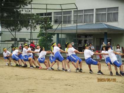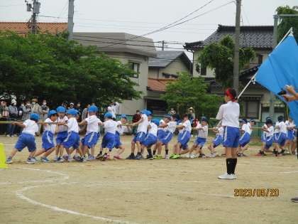 運動会 綱引き 公開日 2023/05/20 更新日 2023/05/20 かがやき級 綱引きでは、各団声を掛け合いながら、力強く綱を引っ張りました。全力を出し切った勝負で、どの団も団結の強さが表れていました。