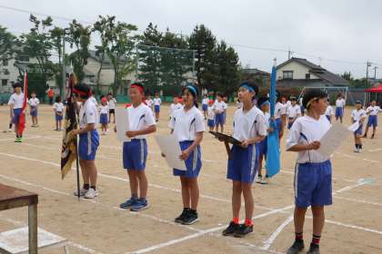 運動会 閉会式 公開日 2023/05/20 更新日 2023/05/20 学校行事 みんなでスローガンの達成を目指してがんばった運動会。草島っ子全員がよくがんばりました。PTAから記念品をいただき、子供たちはとても嬉しそうでした。後日、運動会の振り返りを行い、自分たちの成長を実感したり、次へのさらなる目当てをもって取り組めるようにしていきます。 来賓や保護者の皆様、子供たちへの温かいご声援や、準備、片付け等にご協力くださり、本当にありがとうございました。