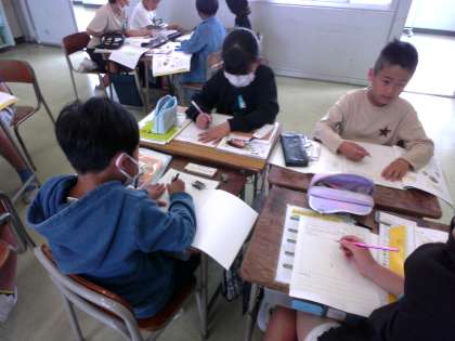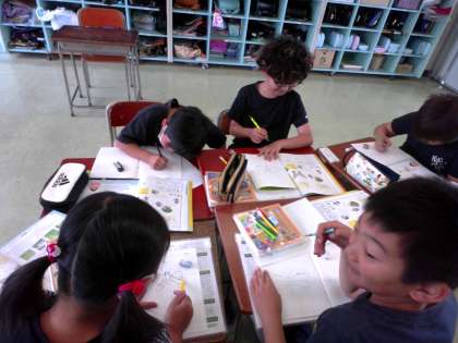 理科の時間にモンシロチョウの卵の観察を行いました。初めて見る生の卵の大きさに驚きながら、虫眼鏡を使いしっかりと観察することができました。