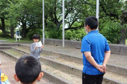 呉羽青少年自然の家に着き、入所式で職員の先生に挨拶をしました。