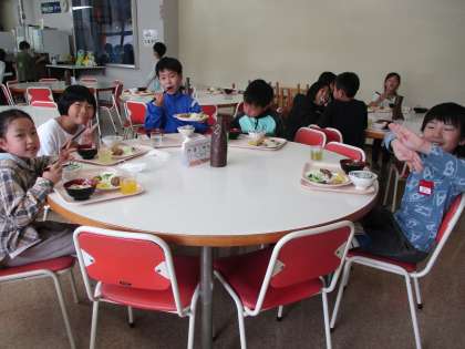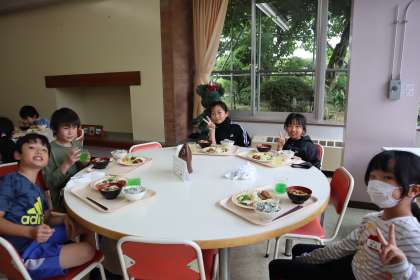 食堂で昼食を食べました。家で今日のメニューを調べてきて、楽しみにしている子もたくさんいました。