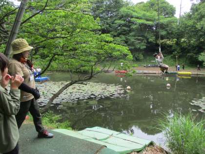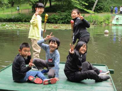 池遊びでは、最初はこわいと思っている子もいましたが、やってみると楽しかったという感想がたくさん聞こえてきました。最後はみんなで集合写真も撮り、よい思い出になりました。
