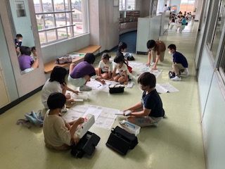 どんなあんどんにすれば「Wa go!夏祭り」が楽しいものになるかをなかよし班で相談しながら絵を描きました。
