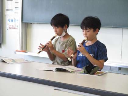 音楽では、「陽気な船長」のリコーダー練習を続けています。友達と合わせて演奏ができるようになっています。