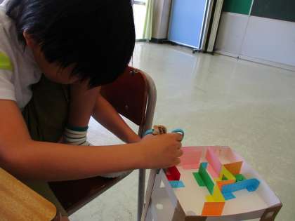 図工では、ビー玉を転がる道を考えながら、楽しみながら作っています。