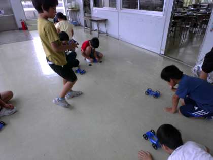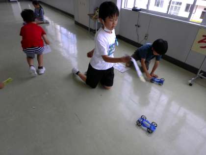 3年生 理科 風とゴムのはたらき 公開日 2023/06/23 更新日 2023/06/23 3年生 今日の理科の時間に、手を使わずに車を動かしてみる実験を行いました。下敷きを使ったり、坂にのせてみたりと様々な工夫をしていました。