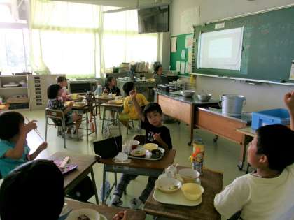 歯みがきの大切さをmeetで伝えました 公開日 2023/06/26 更新日 2023/06/26 児童会・クラブ・集会活動 給食の時間に、健康委員会が作成した「歯みがきの大切さ」のスライドと動画を放送しました。途中、クイズを出されると楽しそうに答える子供たち。これからも、丁寧な歯みがきで歯と口の健康を守ってほしいと思います。