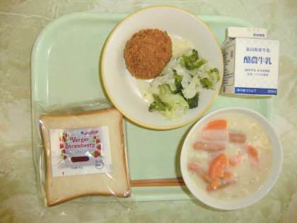 6月27日の給食 公開日 2023/06/27 更新日 2023/06/27 メール用カテゴリ 今日の給食は 食パン ぎゅうにゅう メンチカツ グリーンサラダ しろはなまめのこめこシチュー いちごジャム です。 今日もおいしくいただきました。