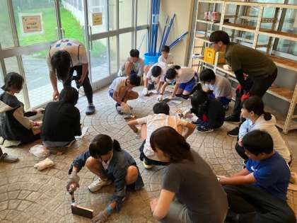 6年生 集団宿泊学習3 焼き板づくりをしました 公開日 2023/06/29 更新日 2023/06/29 6年生 午後の活動の1つ目は焼き板作りです。 板をバーナーで焼いて、自分なりの看板を作りました。 初めて使うバーナーに苦戦しながら作品を作っています。 自然の木の木目と,焼き目の美しさに気付いていました。 最後には色付けをし、素敵な作品を完成させました。
