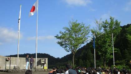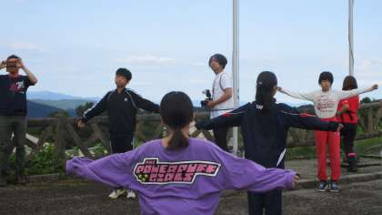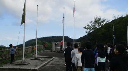 6年生 集団宿泊学習6 さわやかな「朝の集い」 公開日 2023/06/29 更新日 2023/06/29 6年生 宿泊学習2日目。昨夜の雨が上がり、さわやかな青空が広がりました。 朝の会では、校旗を揚げ、ラジオ体操や活動紹介を行いました。