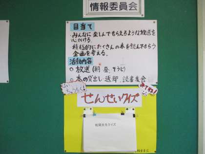 情報委員会の子供たちは、6月14日から毎日一人ずつ「今年度新しく来られた先生クイズ」を掲示したり、お昼の放送で紹介したりしてきました。