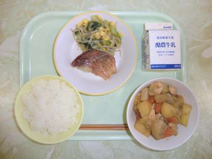 6月30日の給食 公開日 2023/06/30 更新日 2023/06/30 メール用カテゴリ 今日の給食は ごはん ぎゅうにゅう あかうおのしおやき チンゲンサイソテー とりにくとじゃがいものごまに です。 今日もおいしくいただきました。
