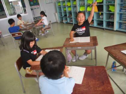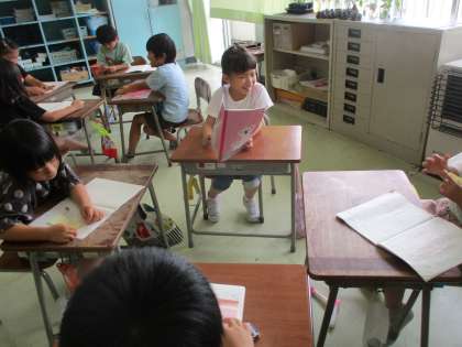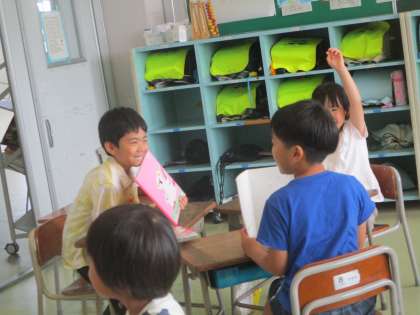 「くちばし」の学習の後、いろいろな鳥のくちばしを調べて、「くちばしクイズ」と作りました。クロムブックで調べた鳥の画像を基にくちばしの形や長さ、太さ等の特徴を言葉にして問題を作りました。グループの友達と問題を出し合いっこを楽しみました。