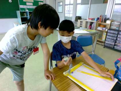 あおぞら級 理科の実験 公開日 2023/07/06 更新日 2023/07/06 あおぞら級 理科の時間に、ビー玉が高いところから低いところに移動することを調べました。 スタートからゴールまでどのようにビー玉が動くのかを調べたり、高さと速さの関係等を比べたりしました。乾電池の自動車づくりでは、友達と仲よく作りました。