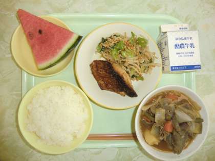 7月7日の給食 公開日 2023/07/07 更新日 2023/07/07 メール用カテゴリ 今日の給食は ごはん ぎゅうにゅう にくじゃが さばのしおやき いりだいずあえ すいか です。 今日もおいしくいただきました。