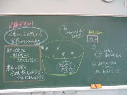 ご飯粒が食器に残っている様子が見られたので、給食時間に見直す機会を設けました。食器がきれいになったよと、子供たちが見せてくれました。