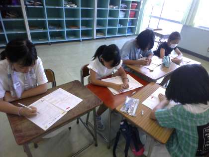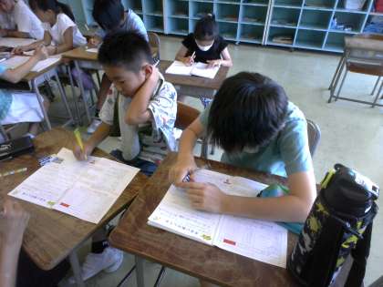 夏休み初日でしたが、たくさんの人が学習しに来ていました。学習を進めたあとはプールに向かいます。