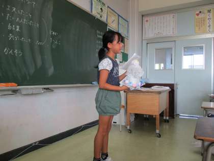 夏休みにがんばった自由研究をみんなに紹介しました。実験をしたり、作品を制作したりと一人一人がんばってきた様子がよく伝わりました。