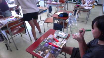 5年生 図画工作科「光と場所のハーモニー」 公開日 2023/09/07 更新日 2023/09/07 5年生 光源を当てることで感じる美しさをテーマに、造形あそびの学習をしています。写真は、身近な素材であるペットボトルを用いた導入の時間です。光が通ったときの美しさをイメージして取り組む子供の姿や失敗から学ぼうとする姿が見られます。楽しみながら学びを進めてくれると期待しています。