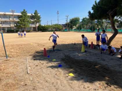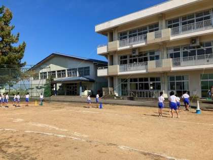 子供たちは、1限目の涼しい時間に熱中症対策をしながら取り組んでいます。
