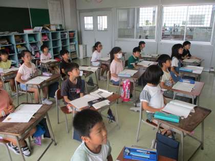 2年生 シェイクアウト訓練 公開日 2023/09/04 更新日 2023/09/04 2年生 9月1日、防災の日にちなんで、地震の避難訓練を行い、子供たちは、机の下に素早く隠れました。訓練後、校長先生の話を真剣に聞いていました。