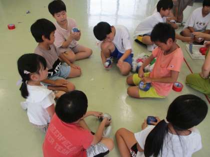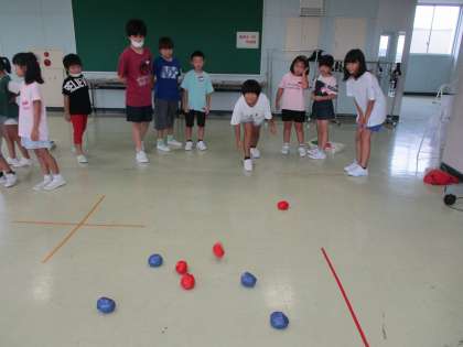 6年生主催 ボッチャ作り&体験会を行いました 公開日 2023/09/07 更新日 2023/09/07 6年生 ワイド仲良しタイムの時間を利用して、縦割り班でボッチャ作りを行いました。 6年生が「本物」のボッチャに近付けるために、重さを量り、ボールの中身を準備しました。 今日は用意された中身に、赤色と青色のテープを貼り付け完成させました。 その後、自分たちが作ったボッチャのボールでゲームを行ったり練習をしたりして、異学年交流を楽しむ姿があふれました。