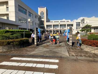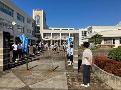 小中合同あいさつ運動が行われました 公開日 2023/09/07 更新日 2023/09/07 学校行事 3日間に渡って小中合同あいさつ運動が行われました。 中学生が草島小学校に来てもらい、草島っ子と一緒にあいさつ運動をしました。 普段とは違い、あいさつの大切さを感じている子もいました。 学級で話し合ったり、自分の目当てをもったりして取り組むことで、自分の成長につなげてほしいと願っています。