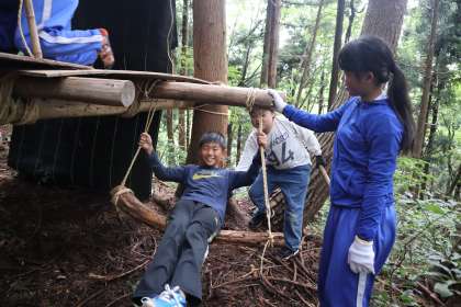 午後は土台をもとに、森小屋を発展させていく活動となりました。各班で協力して取り組み、楽しむ姿が見られました。