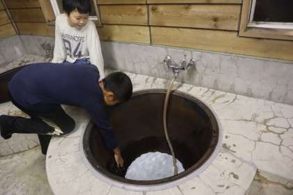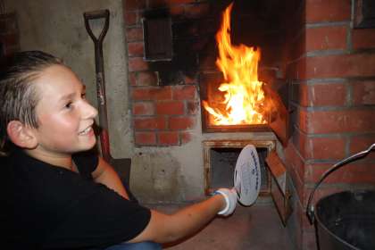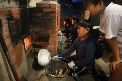 夜は五右衛門風呂で入浴しました。火をくべ温度を調節することで、「昔の人は大変だ」と話す子供がいました。
