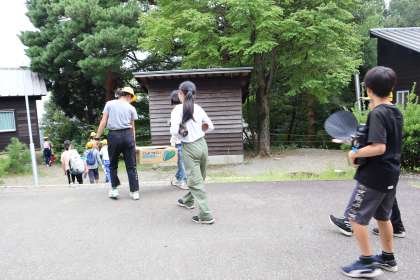 5年生 宿泊学習7 村内ビンゴオリエンテーリング 公開日 2023/09/22 更新日 2023/09/22 5年生 2日目の1つめの活動は、村内ビンゴオリエンテーリングでした。班の仲間と村内の自然を味わいながら散策しました。