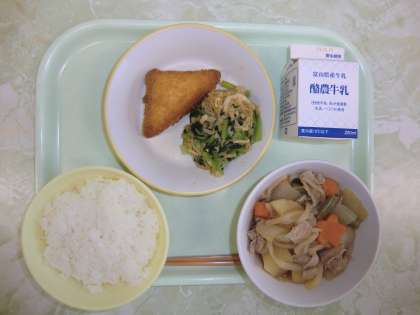 10月5日の給食 公開日 2023/10/05 更新日 2023/10/05 メール用カテゴリ 今日の給食は ごはん ぎゅうにゅう はんぺんフライ はりはりあえ にくじゃが です。 今日もおいしくいただきました。