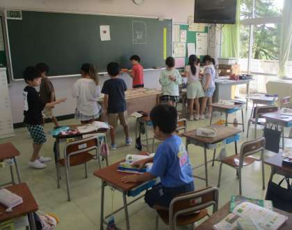 2年生 算数科 三角形や四角形を調べよう 公開日 2023/10/06 更新日 2023/10/06 2年生 教室の中に直角があるか調べました。「ここにあるよ」「100こ見つけたよ」と子供たちは、たくさん見つけていました。