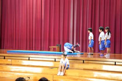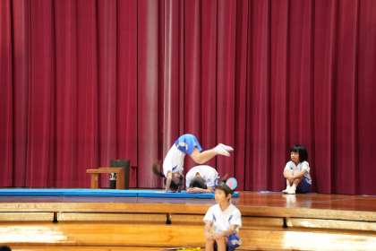 1年生 学習発表会 1 公開日 2023/10/22 更新日 2023/10/22 1年生 1年生は「できるようになったよ おむすびころりん」(合科的な発表)を発表しました。今年、草島ねずみ小学校に入学したかわいいねずみたちが、おむすびをくれたお礼に、入学してからできるようになったことを披露しました。マット運動ねずみ達は、足を揃えて前にくるんと回りました。