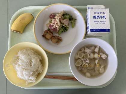 10月25日の給食 公開日 2023/10/25 更新日 2023/10/25 メール用カテゴリ 今日の給食は ごはん ぎゅうにゅう ほたてのバターしょうゆやき きりぼしだいこんのペペロンチーノ マカロニスープ バナナ です。 今日もおいしくいただきました。