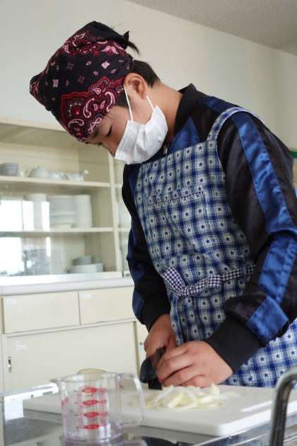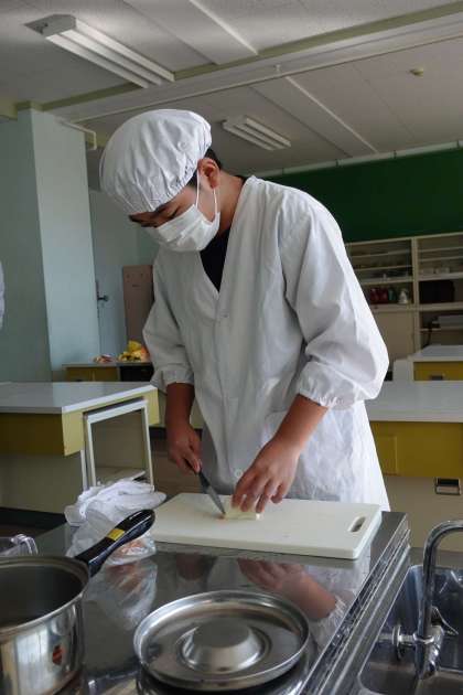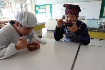 10月26日(木) 家庭科 調理実習 公開日 2023/10/27 更新日 2023/10/27 かがやき級 家庭科で味噌汁の調理実習がありました。 食材は草島小学校産のナス、ネギ、人参の葉でした。 慎重に切ったり、味噌の量を調整したりして、美味しい味噌汁を作ることができました。