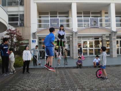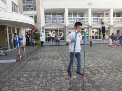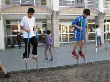 竹馬ブーム 公開日 2023/11/02 更新日 2023/11/02 メール用カテゴリ 草島っ子たちに今人気の竹馬。みんな楽しそうに遊んでいます。高学年の子たちが高い竹馬にチャレンジしている姿を見て、低学年の子たちもがんばって取り組んでいます。