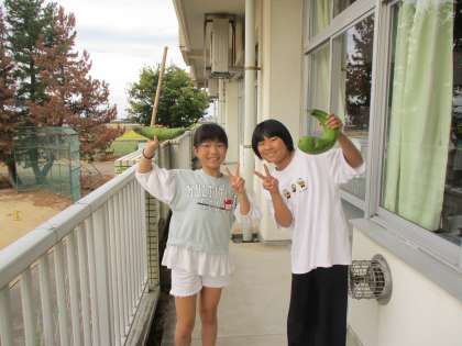 総合的な学習の時間に、各自の取り組みをしています。今日は小学校の敷地内にあるごみを拾いに行った子や、玄関の落ち葉を掃いている子がいました。その後は、通学路や敷地内で拾ったごみの報告会をしていました。夏に作ったグリーンカーテンのヘチマやゴーヤも収穫できました。