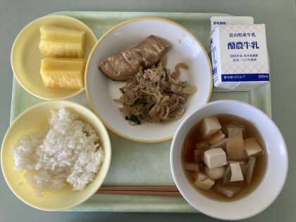 11月9日の給食 公開日 2023/11/09 更新日 2023/11/09 メール用カテゴリ 今日の給食は ごはん ぎゅうにゅう ふくらぎのさいきょうやき しらたきのピリからいため しらたまじる パインアップル です。 きょうもおいしくいただきました。