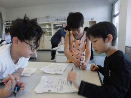 3年 算数の学習 公開日 2023/11/09 更新日 2023/11/09 3年生 担任から「たからさがし」の紙が配られ、子供たちはコンパスを使って、宝のありかを探しています。みんな、真剣そのもの。半径と直径の違いにも気を付けながら取り組み、ついに宝を見付けていました。宝が何だったのかは、ぜひご家庭でお聞きください。