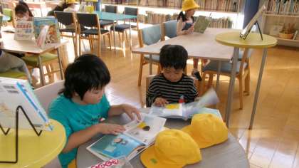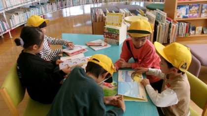 1年生 校外学習 大島絵本館2 公開日 2023/11/09 更新日 2023/11/09 1年生 絵本に出てくるお気に入りのキャラクターに囲まれて読書を楽しむ子、友達と一緒に1冊の本をのぞき込んで読む子、迷路の本を友達と一緒に楽しむ子、飾ってある絵画に足を止めて見入っている子。深まりゆく秋、本の世界にどっぷりと浸り、それぞれゆったりと流れる楽しい時間を過ごしました。