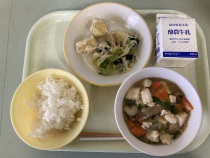 11月10日の給食 公開日 2023/11/10 更新日 2023/11/10 メール用カテゴリ 今日の給食は ごはん ぎゅうにゅう にんじんシューマイ すのもの えびととうふのうまに です。 今日もおいしくいただきました。