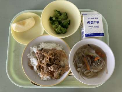 11月15日の給食 公開日 2023/11/15 更新日 2023/11/15 メール用カテゴリ 今日の給食は ごはん ぎゅうにゅう スタミナレバーどん ゆでブロッコリー ワンタンスープ りんご です。 今日もおいしくいただきました。