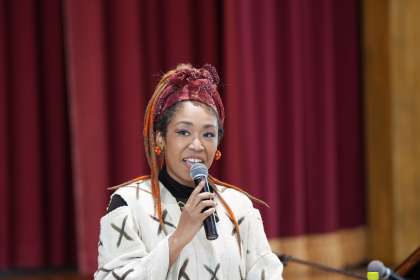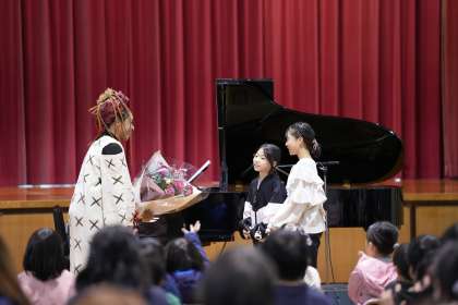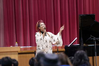 歌手のCHIKOさんの講演会がありました。小学校時代に苦労したこと、そこから歌手になるまでに自分を変えた話などをすばらしい歌声とともに講演していただきました。大変すてきな講演会になりました。