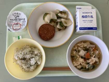11月21日の給食 公開日 2023/11/21 更新日 2023/11/21 メール用カテゴリ 今日の給食は 菜めし ぎゅうにゅう とやまミートコロッケ とろろこんぶあえ かきたまじる りんごヨーグルト です。 今日もおいしくいただきました。