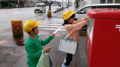 2年生 町探検 1 公開日 2023/11/24 更新日 2023/11/24 2年生 2年生は、雨の中、町探検に出かけました。 郵便局では、どんな仕事があるかインタビューしたり、自分が書いたはがきを出したりしました。