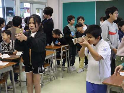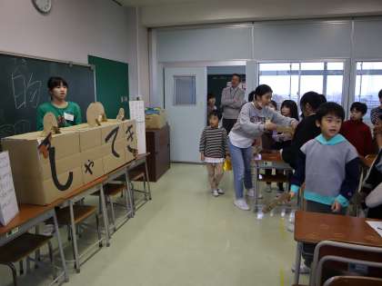 5年生 もう冬だけど「秋祭り」 公開日 2023/11/29 更新日 2023/11/29 5年生 もうすっかり季節が冬を迎えているようですが、ワイド仲良しタイムに秋祭りを行いました。5年生児童の「全校のみんなに楽しんでもらいたい」という願いが動機となった活動です。約1か月、休み時間や朝活動を利用して、準備を進めてきました。活動の様子を紹介します。