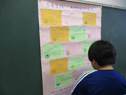 5年生 もう冬だけど「秋祭り」その後 公開日 2023/11/29 更新日 2023/11/29 5年生 活動後には、学級で振り返りました。「終わりの時間を意識して声かけができなかった」「迷路に入るときには荷物をもってあげた方がよかったな」「スタンプカードの置き場所を決めておけばよかった」など、成果ではなく課題に目を向けた言葉が聞かれ、子供たちの向上心を感じました。 1年生の皆さんからお礼の手紙を頂きました。「楽しかった」という感想を本当に嬉しそうに眺めていました。